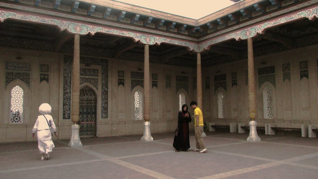 Внутри и снаружи мавзолея на стенах начертаны цитаты из Корана.